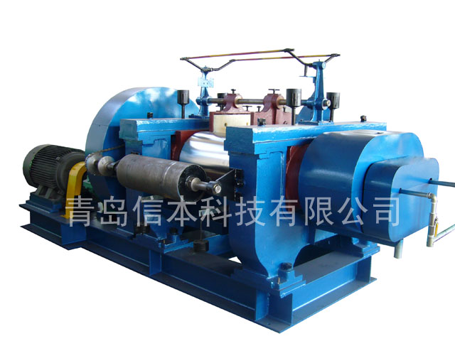 本機(jī)主要由底座、機(jī)架、前后輥筒、主傳動(dòng)機(jī)構(gòu)、調(diào)距裝置、輥溫調(diào)節(jié)裝置、潤(rùn)滑裝置、擋膠裝置、切刀組件、卷取機(jī)構(gòu)、安全裝置及電氣控制系統(tǒng)組成。本機(jī)技術(shù)成熟、性能穩(wěn)定、質(zhì)量可靠。