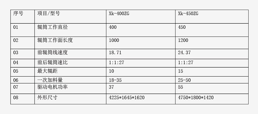 4.采用硬齒圓柱齒輪減速機(jī)直牽后輥筒傳動(dòng)(傳統(tǒng)機(jī)型采用開式大小齒輪傳動(dòng))與傳統(tǒng)機(jī)型相比具有結(jié)構(gòu)緊湊、傳動(dòng)效率高、噪音小、壽命長、維護(hù)方便、潤滑油消耗少和廢油不污染膠料等優(yōu)點(diǎn)